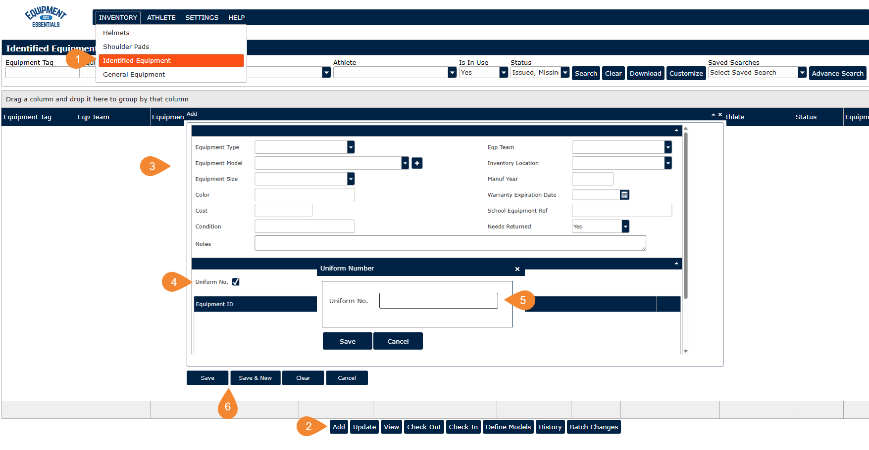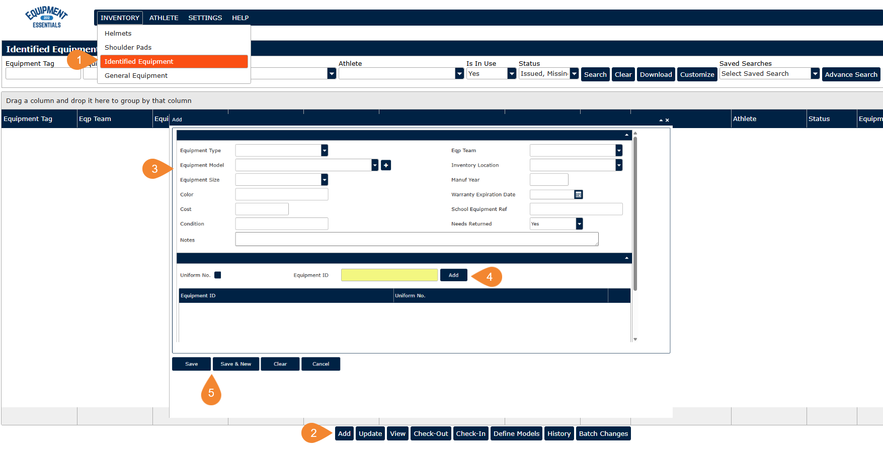 Add/Update Identified Equipment