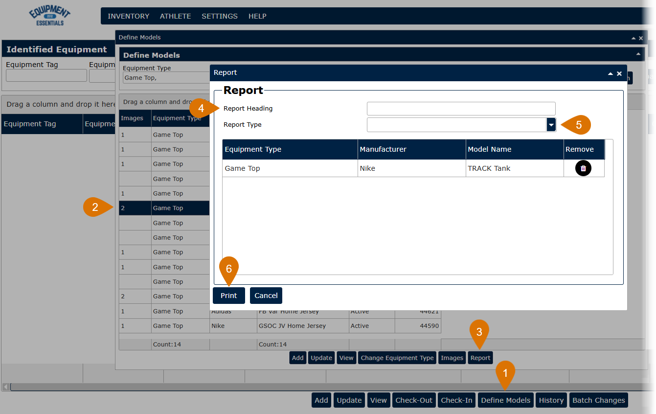 - Type in a Report Heading to be printed at the top of your report. Ex. Boys' BB Varsity Uniforms