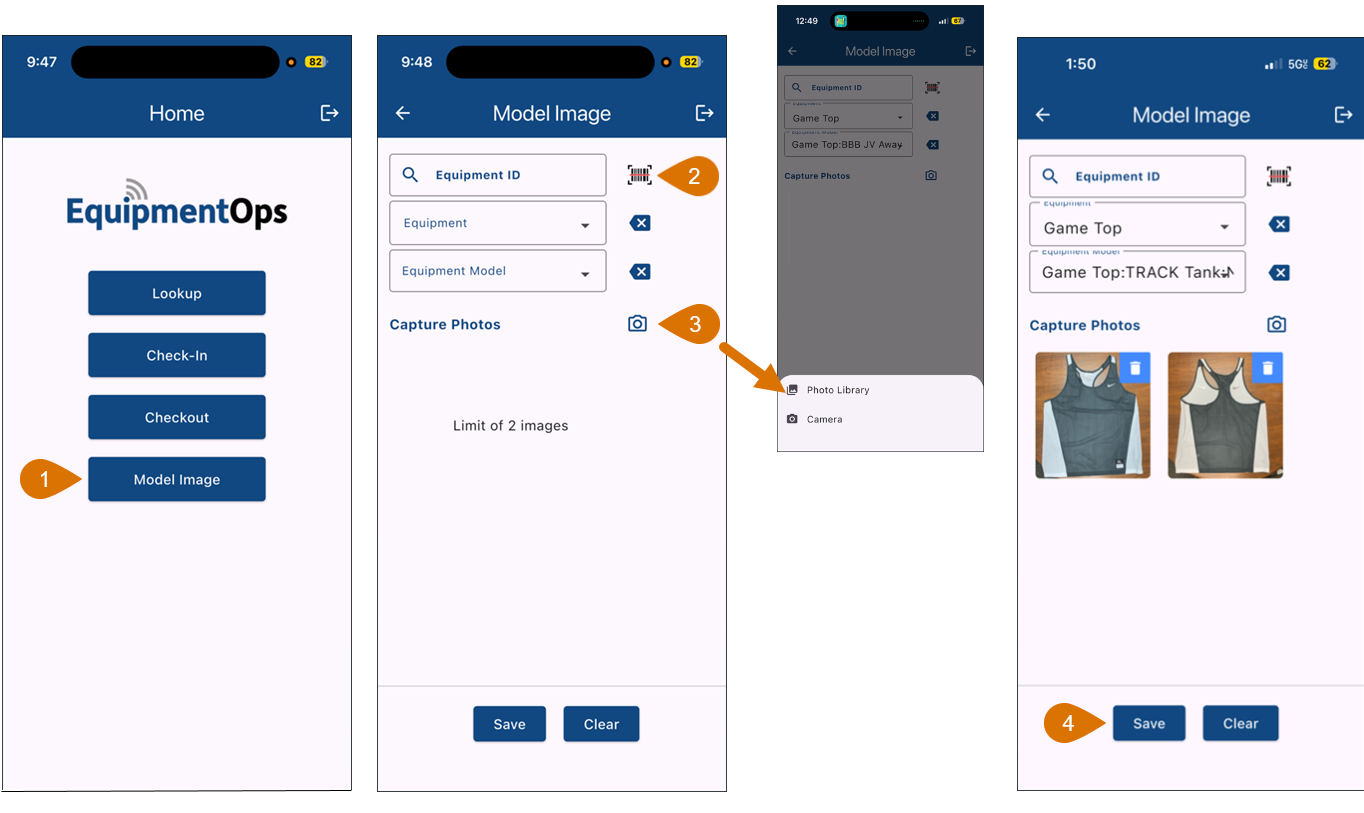 - Tap the camera icon. Use your camera or Photo Library to capture up to 2 images per model.